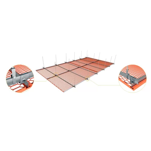 Our expanded metal ceiling adopts hook-on system. It not only achieves the design purpose of architects and designers, but also makes the installation easier and roof system maintenance easier.