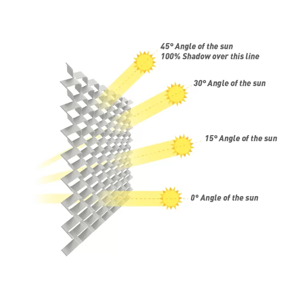 As the sun rises in the sky, the light passing through the expanded metal varies as the angle of light changes. When the sun reaches a certain angle, the strand width creates the maximum shadow area. At this time, the mesh opening can maximize the indoor daylight and air flow and make the room bright and cool. This shading effect is similar to the principle of the louver.